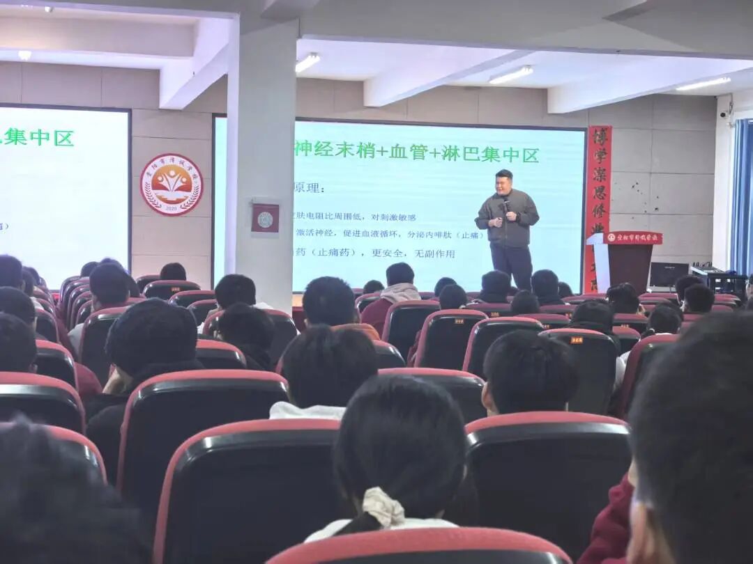 为深化学生对中医药文化的认知,增强文化自信,我校于12月21日下午举办了“针灸——刻在中国文化基因中的独特魅力”的主题知识讲座。讲座特别邀请山东中医药大学中医学院毕业的周华科医生主讲,讲解针灸原理,涵盖“针”与“灸”的构成、“穴位”与“人体调节机制”的关联,层层剖析针灸奥秘。