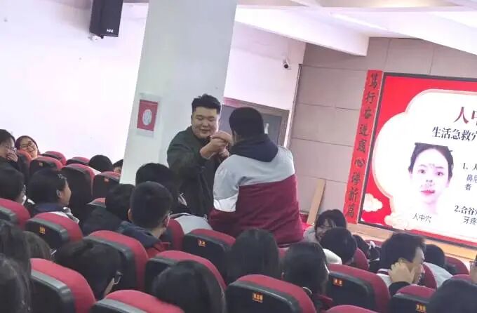 讲座中,周医生现场演示了针灸的基本操作,展示常用穴位的定位技巧,在“寻找神奇按钮”互动中,同学们模拟寻找穴位,感受针灸刺激,现场气氛热烈。周医生以“重启键”为喻,生动阐释针灸原理,结合现代医学,揭示穴位皮肤电阻低、刺激敏感特性,说明针刺激活人体调节能力。同学们纷纷表示对针灸有了全新的认识,深刻感受到其科学性与趣味性,直观领略到中医文化的深厚底蕴和现代价值。