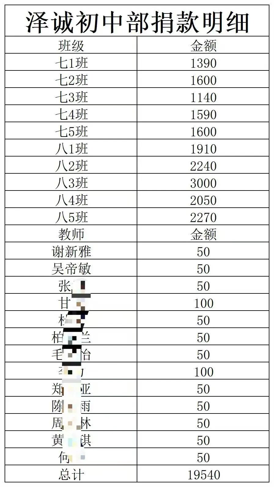 “一方有难,八方支援”的信念,在泽诚学校的家长与教师群体中迅速凝聚。教师们率先垂范,从工资中挤出善款;家长们以身作则,带着孩子共同参与捐助。短短两日,四万余元善款汇聚而成,这不仅是数字的叠加,更是责任的凝聚、爱心的传递,是泽诚学校“育人为本、向善而行”的生动实践。