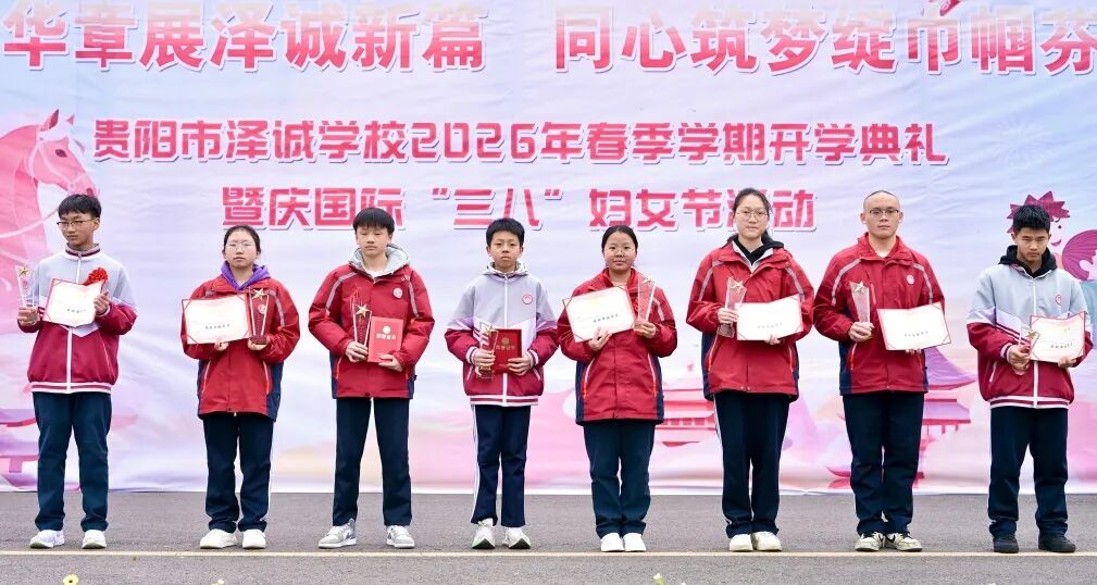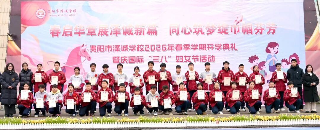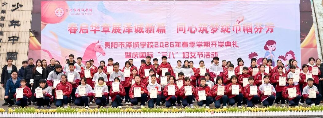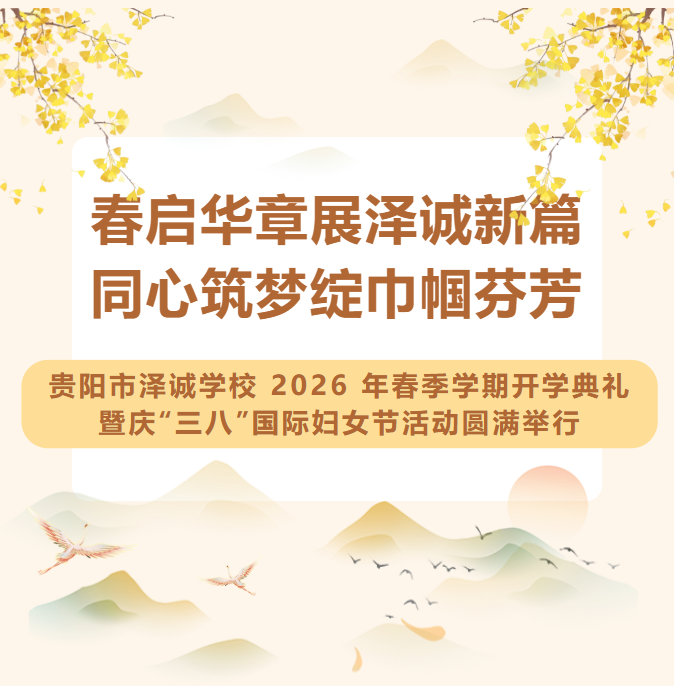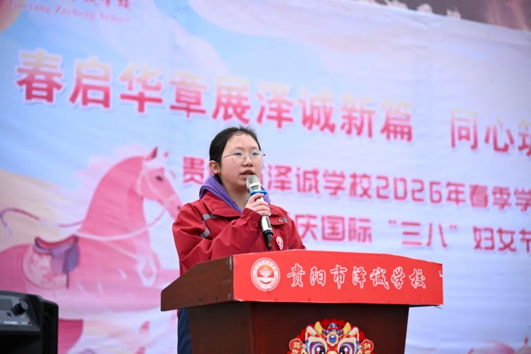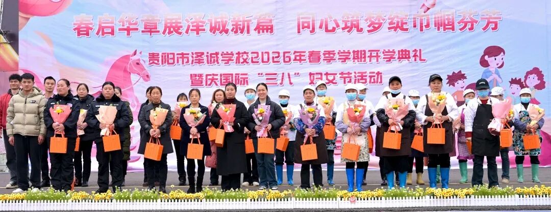 春潮涌动启新程,巾帼芳华绽荣光。在这万物复苏、春意盎然的美好时节,贵阳市泽诚学校齐聚全体师生,隆重举行2026 年春季学期开学典礼暨国际 “三八” 妇女节庆祝活动,既为新学期吹响奋进号角,也向校园里每一位绽放光彩的巾帼力量致以最诚挚的敬意与祝福。