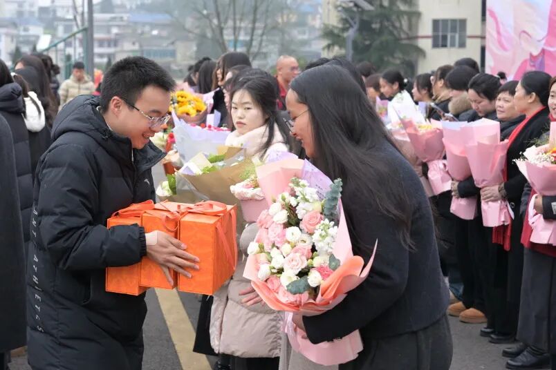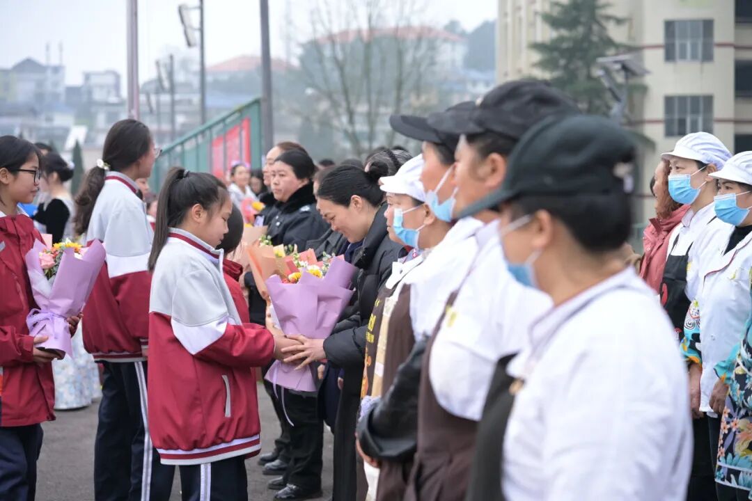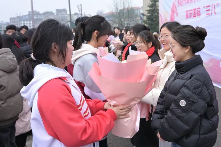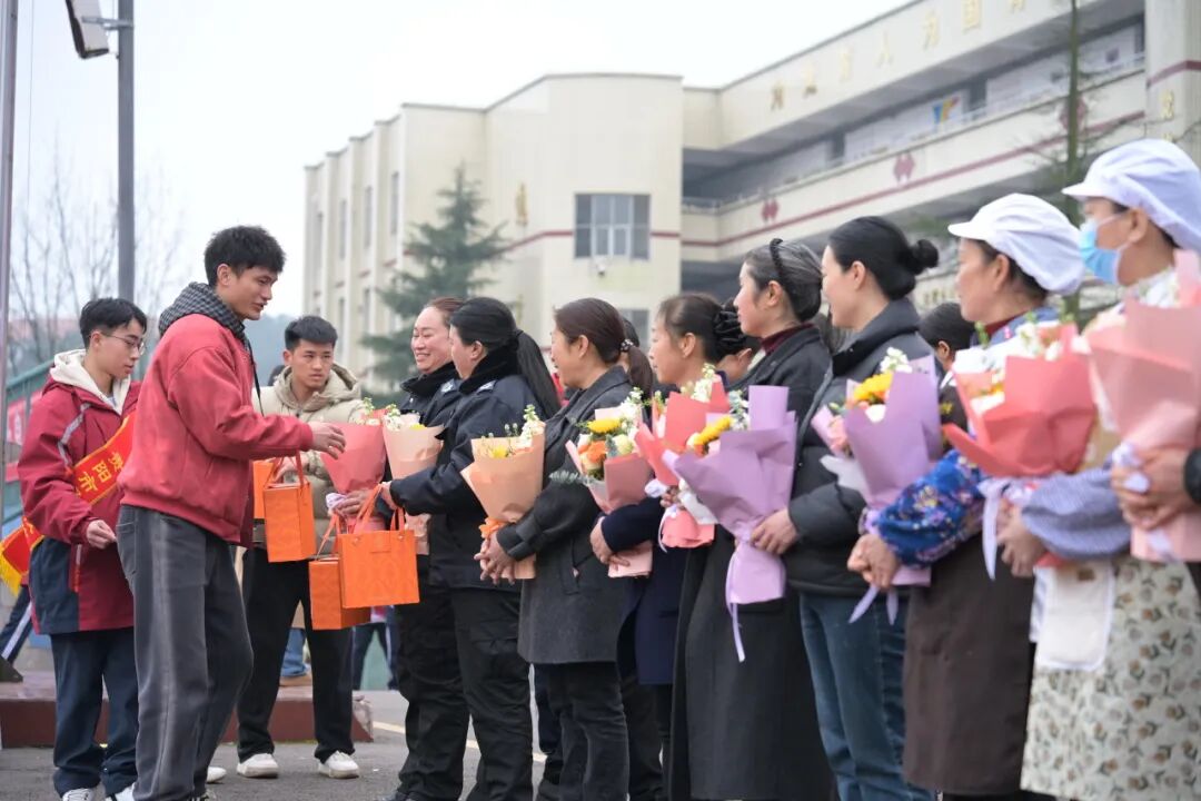 少年抒怀诉衷情,鲜花致敬巾帼美,心意温暖芳华路。每一位女性工作者都是校园里靓丽的风景线:致敬三尺讲台的女教师、守护校园的生活老师、坚守后勤的女员工!