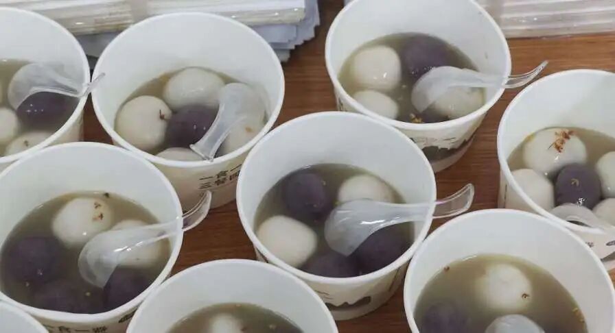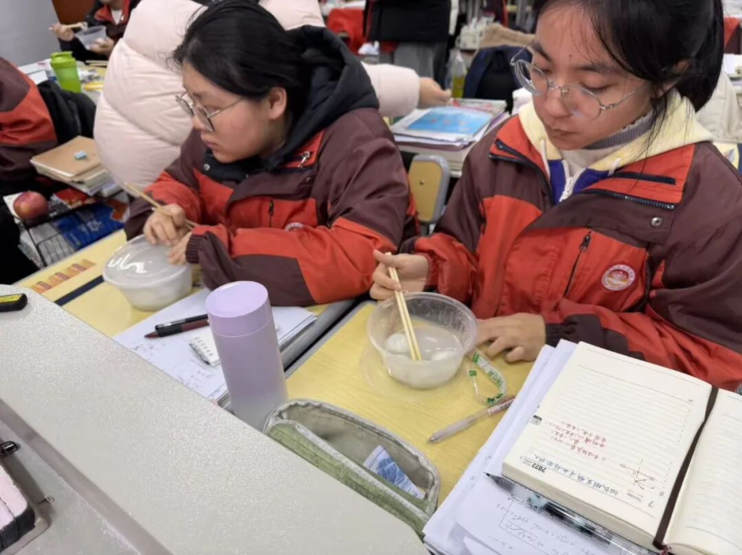 热气腾腾的汤圆寓意着团圆,香甜的蛋糕、营养的牛奶与丰富的零食,处处洋溢着喜庆祥和的气息。同学们围坐在一起,品美食、谈理想,欢声笑语回荡在校园的每个角落,节日氛围格外浓厚。