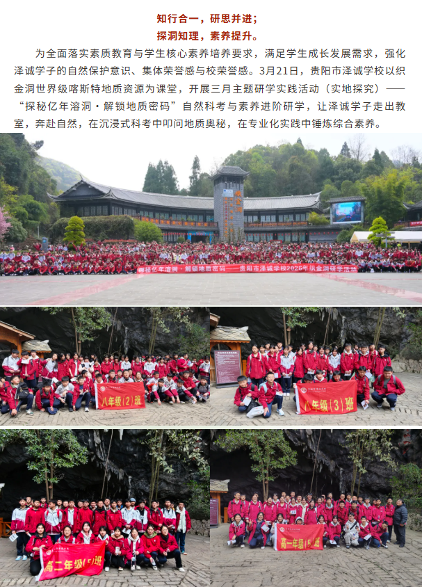 探秘亿年溶洞·解锁地质密码 ——贵阳市泽诚学校织金洞自然科考与素养进阶研学活动