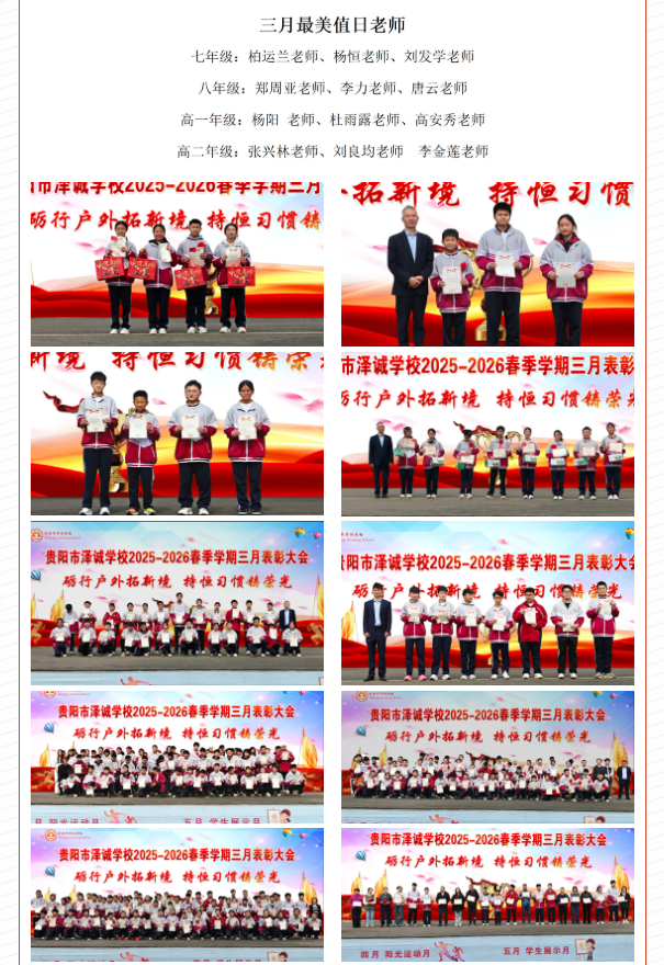 贵阳市泽诚学校2025-2026春季学期三月表彰大会圆满举行